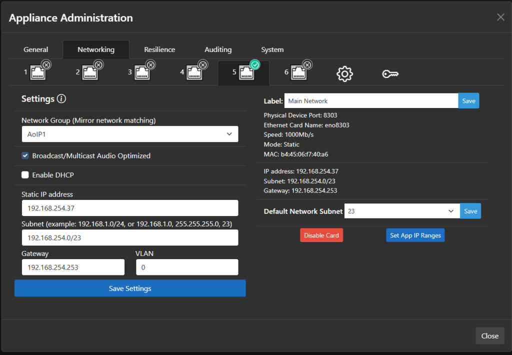 This tab is where the network settings are configured for the VirtualRack. See Networking for more detail