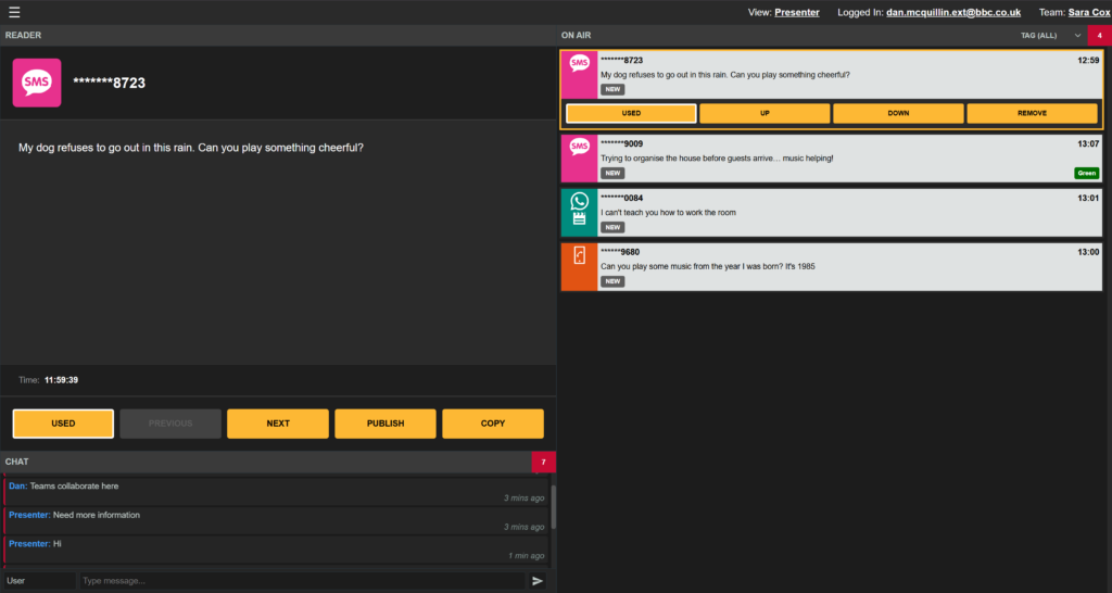 When the presenter reads a message, pressing Enter marks it as used.