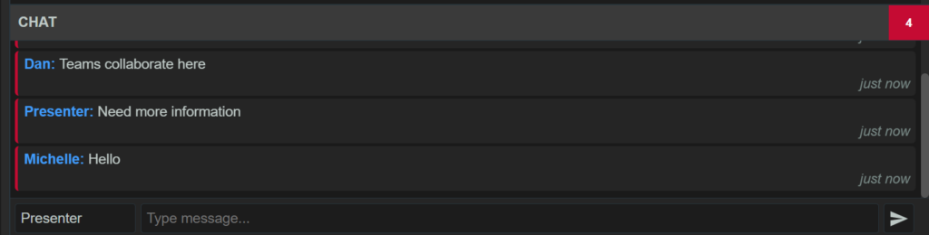 Because chat is separate from audience messages, it gives the production team a private internal communication channel within the same workspace.
